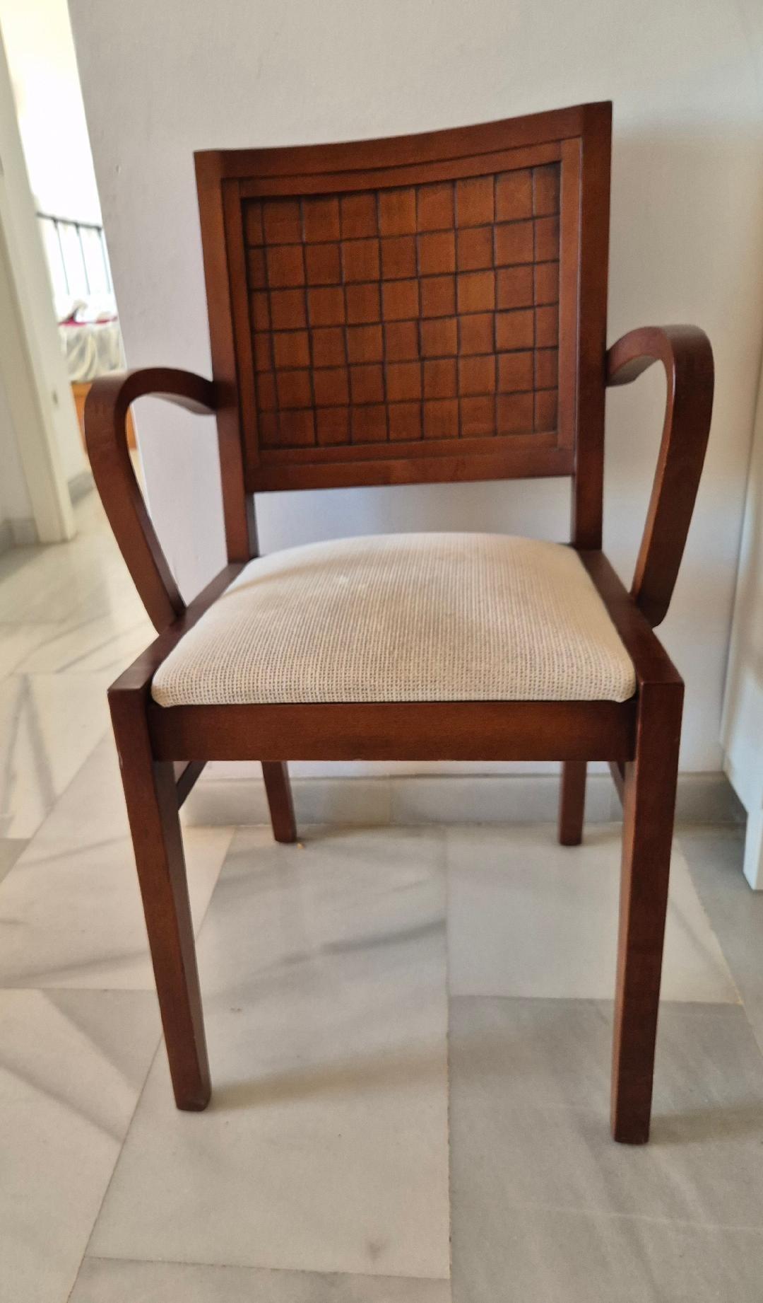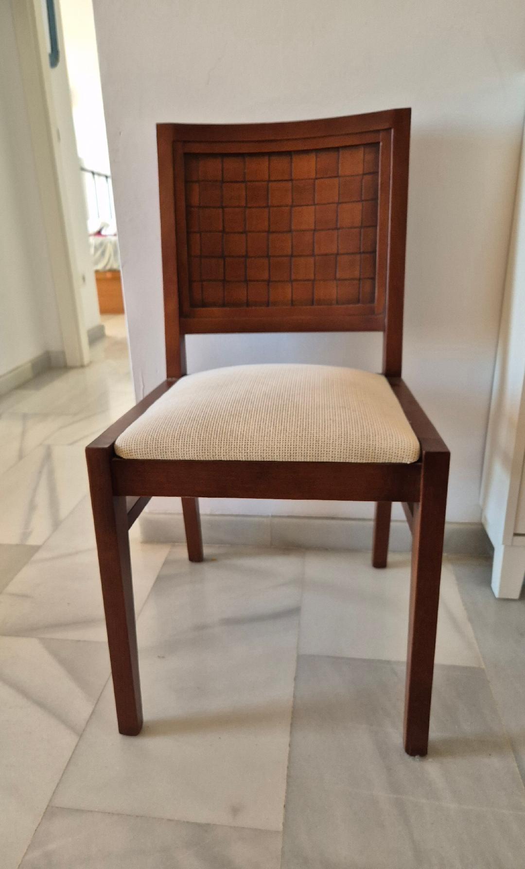 Mesa de Comedor estilo colonial en madera maciza con extensión 4 sillas, 2 sillones y una rinconera a juego labradas y tapizadas casi sin uso y con algún arañazo del transporte